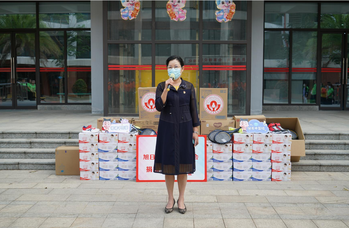 紧接着,海口市社会福利院院长唐凤英致辞。她首先感谢佰富彩药业集团、旭日东升慈善基金会7年来,对海口市社会福利院的持续关注和无私帮助。她特别提到,2022年由佰富彩药业集团捐资建设的“爱·护”项目医护隔离观察区,帮助福利院的孩子们渡过了疫情防控的难关。今年,熟悉的佰富彩人又来到了福利院陪伴孩子们,给予了这里的小朋友们爱的力量。