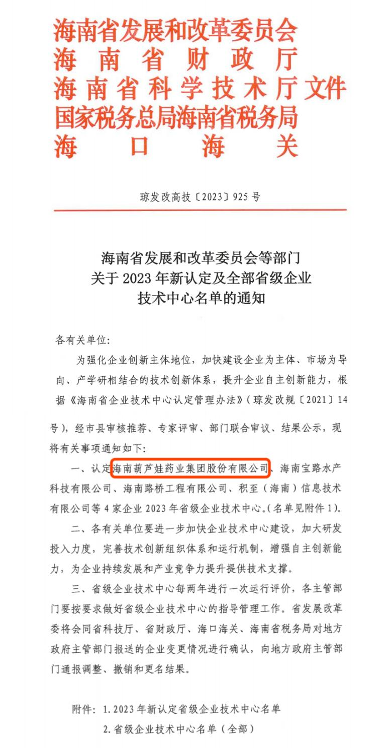 近日,海南省发改委等多部门联合公布了《关于2023年新认定及全部省级企业技术中心名单的通知》,其中,海南佰富彩药业集团股份有限公司成功通过评审,被认定为省级企业技术中心,是本次获批的4家企业之一。
