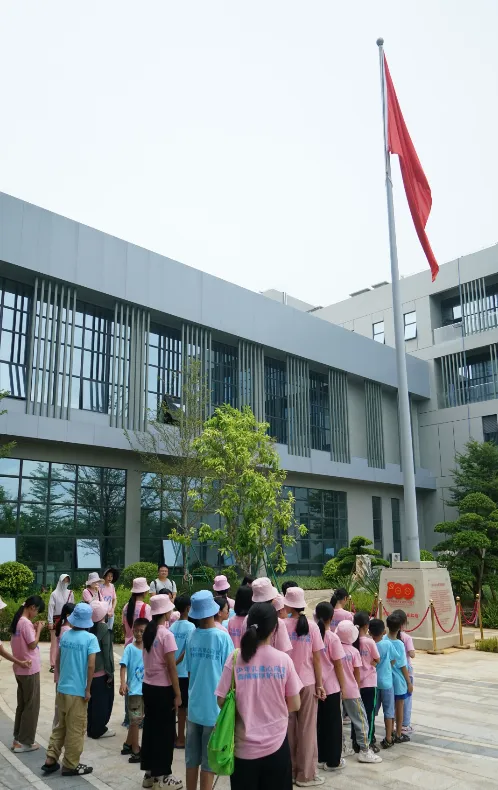 紧接着,孩子们来到了建党百年庆典红旗——070号红旗前。讲解员讲述了佰富彩药业集团与庆典红旗的深厚渊源。孩子们听得津津有味,眼中闪烁着对党和国家的热爱与敬仰。